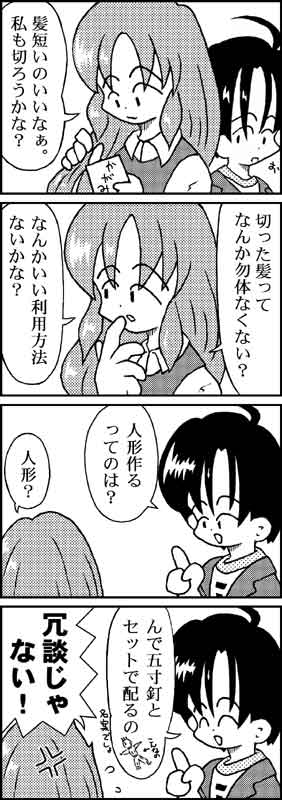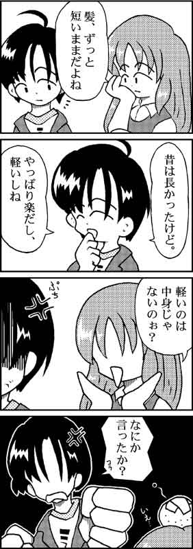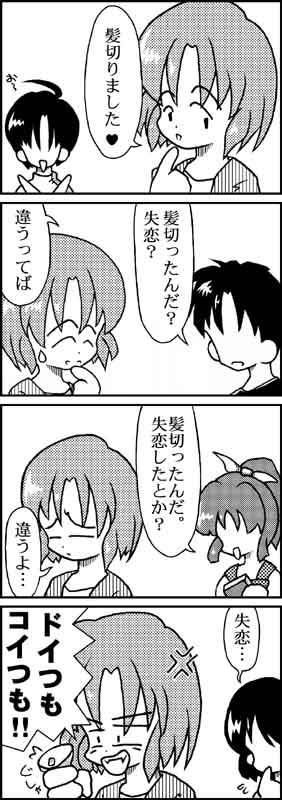 @ 「失恋で髪を切る、って昔4コマのネタにしたよなー」とちょとあさってみた。 ……出てきた。てっきり以前HDDがすっとんだときに消えたとばかり思ってた。